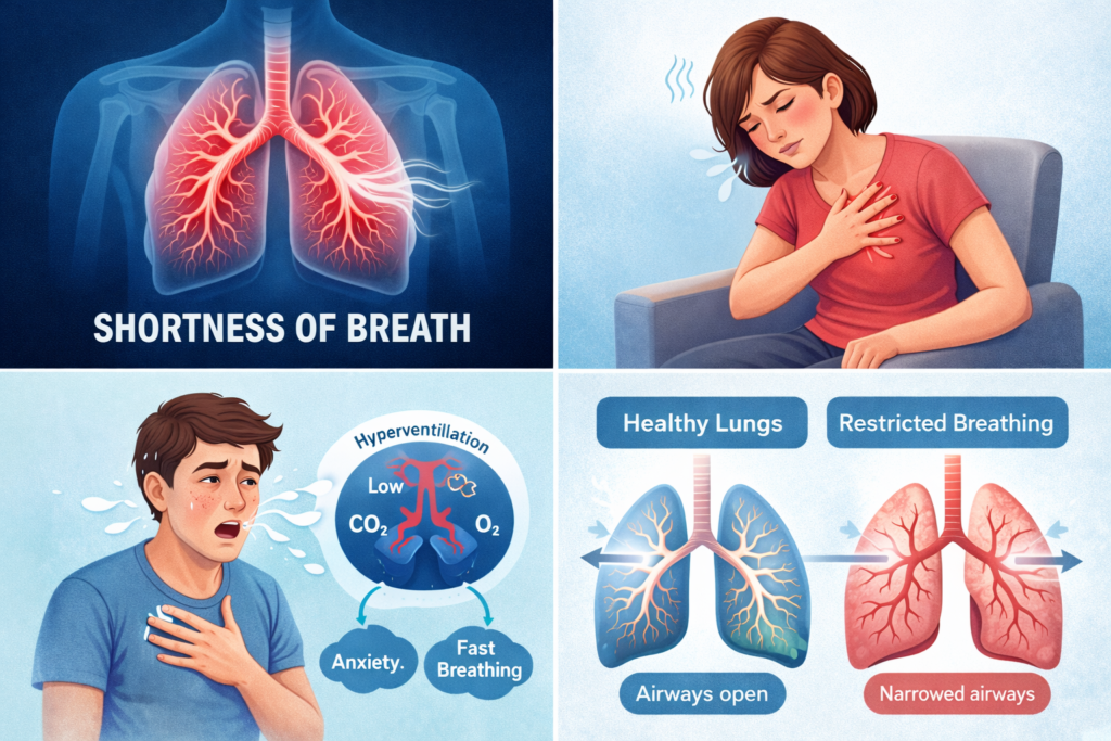 Feeling short of breath while sitting quietly or lying down can be unsettling. Many people expect breathing difficulty only during