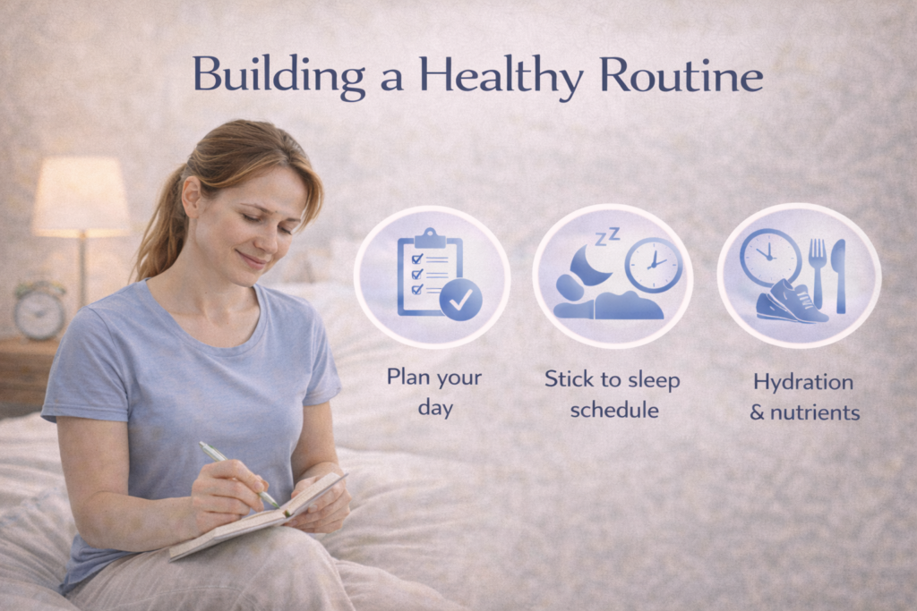 A healthy routine is not about strict schedules or doing everything “right.” It’s about creating a rhythm to daily life